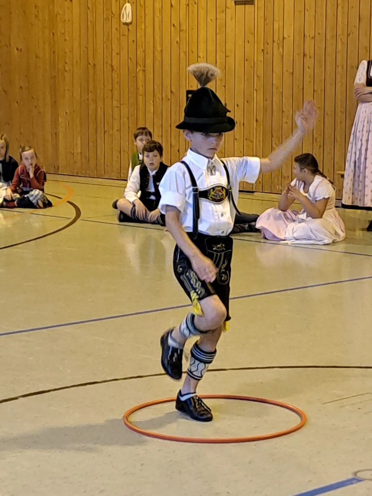 Frau Anna Weiss und das Ehepaar Redl vom G.T.E.V. D’Simsseer Prutting kam mit einigen jungen Trachtlerinnen und Trachtlern, um uns so einiges über ihr Brauchtum zu vermittelten: Wir lernten Interessantes über die Pruttinger Tracht, uns wurde das „Platteln und Dirndl Drahn“ gezeigt, wir sangen und tanzten alle gemeinsam zum Lied „Bin i ned a scheena Hoh`“.